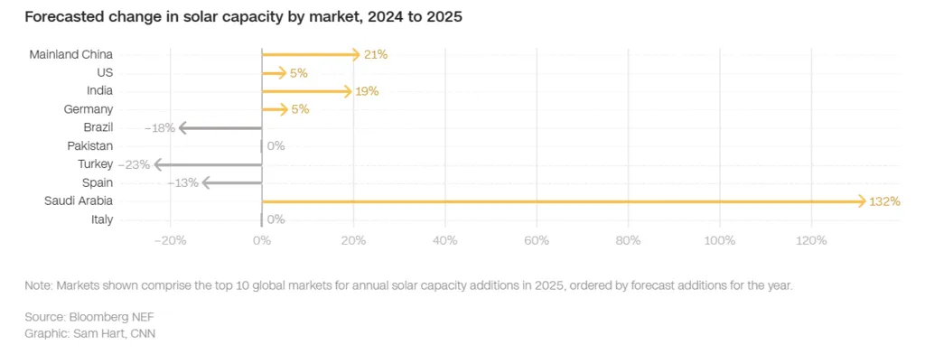 The pace of growth is unprecedented. “No country is going faster,” said Dave Jones of the climate think tank Ember. The scale and speed of Saudi Arabia solar investment 2025 reflect a strategic shift that few would have predicted just a few years ago.