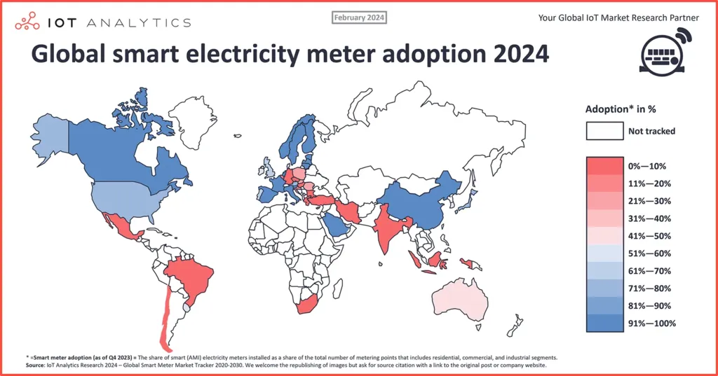 Saudi Arabia is leading the Middle East and Africa region in the adoption of smart meters. By 2022, the state-owned Saudi Electricity Company (SEC) had successfully deployed approximately 11 million smart meters over three years. These devices enable real-time monitoring of energy consumption, empowering consumers with detailed usage insights while helping utilities detect and resolve issues promptly. This widespread implementation forms a crucial foundation for the Kingdom’s transition to smart energy grids.